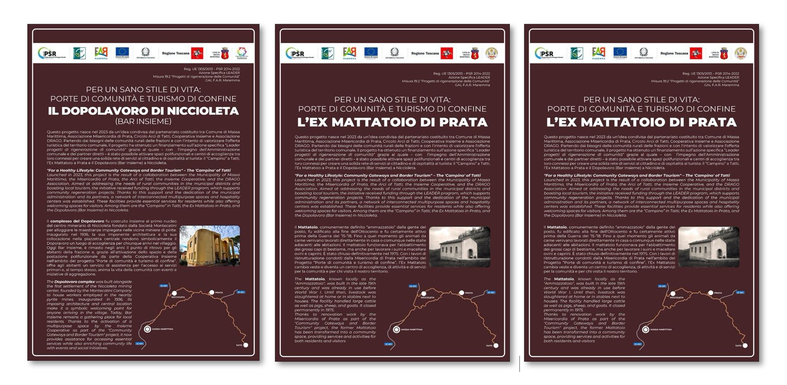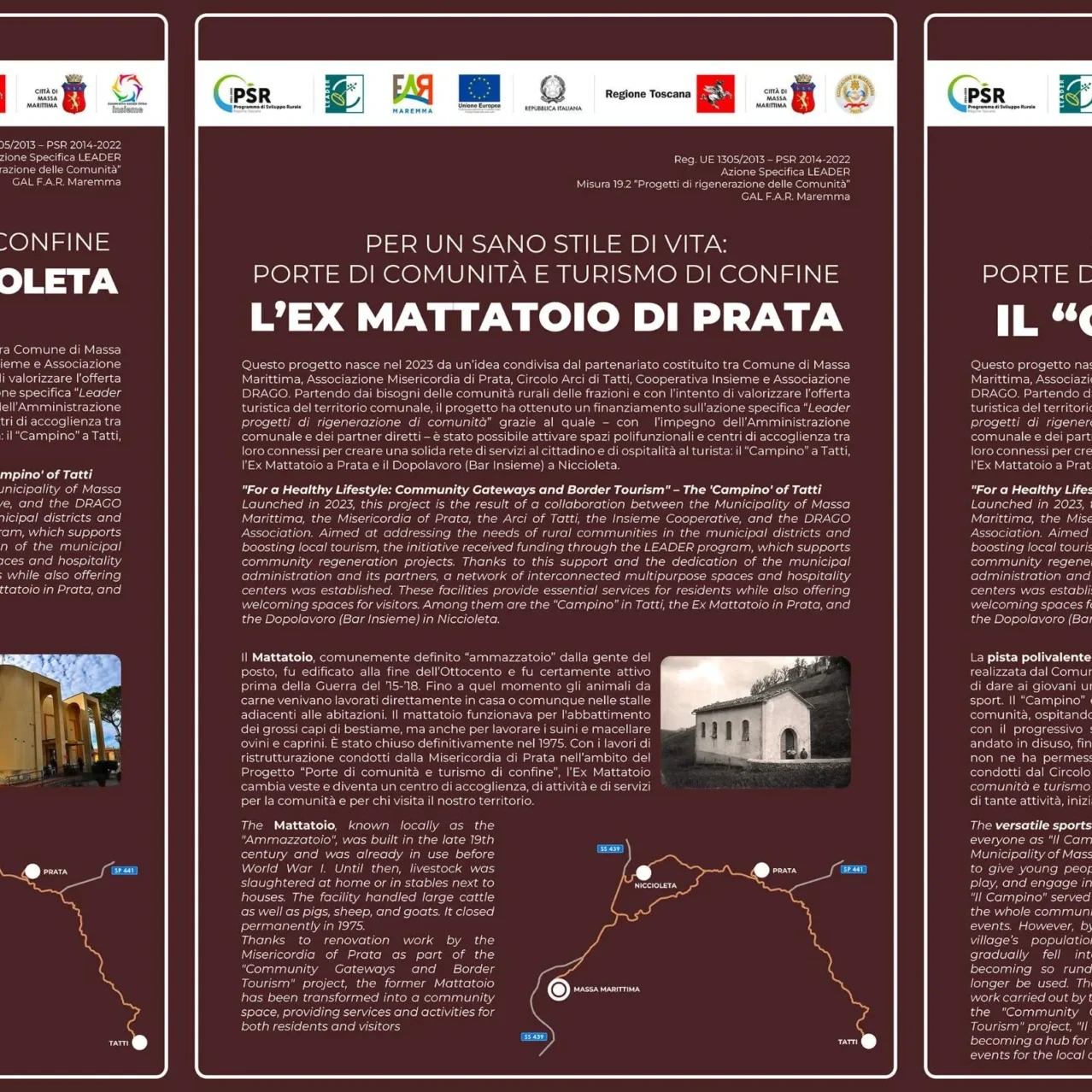 Il progetto va ad attivare e potenziare i servizi al cittadino all’interno delle frazioni di Tatti, Prata e Niccioleta recuperando spazi e immobili in stato di degrado al fine di restituirli all’uso della comunità locale con una rinnovata funzione e pubblici servizi, promuovendo al tempo stesso un sano stile di vita, all’insegna della corretta alimentazione attraverso la valorizzazione dei prodotti locali.
