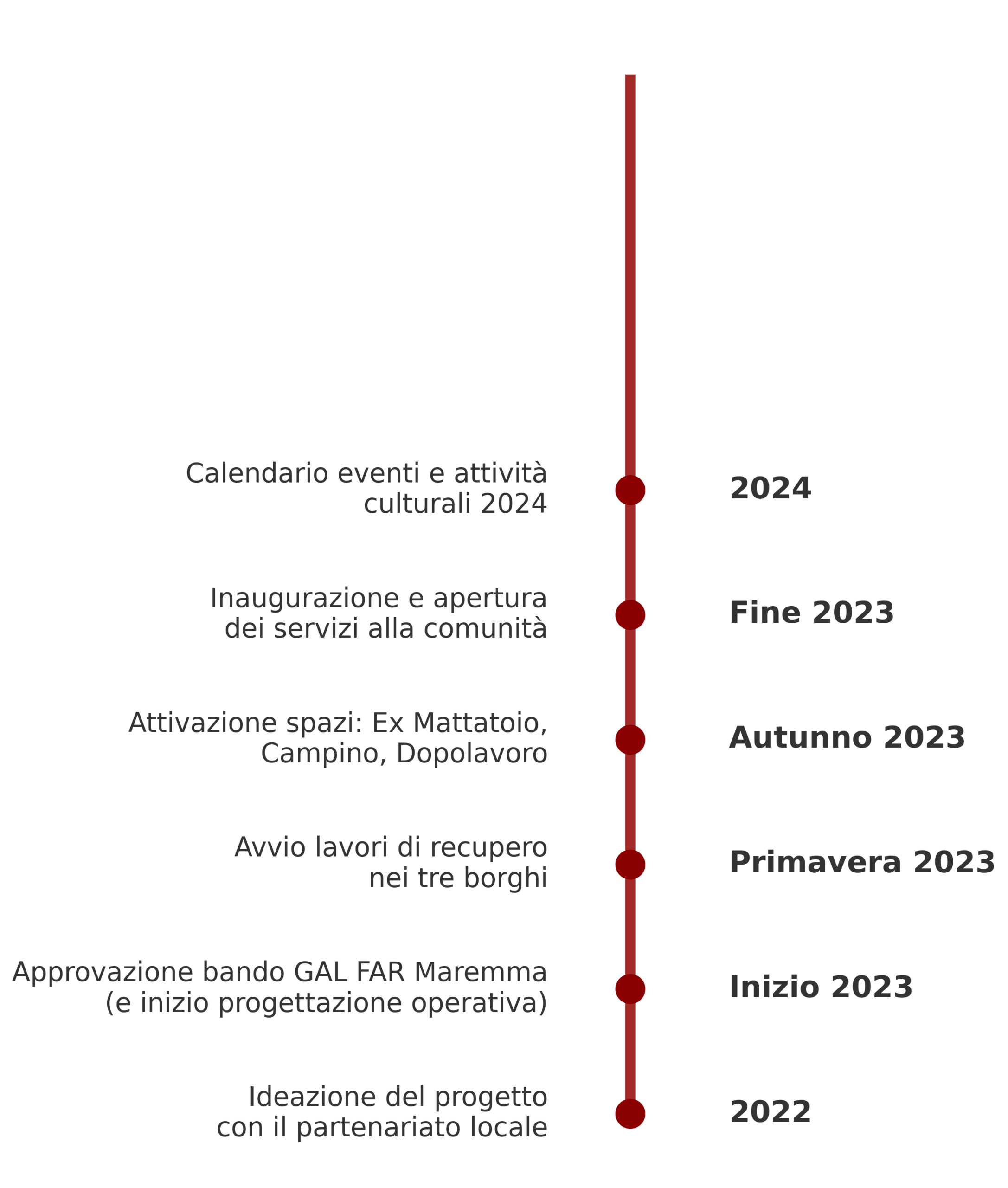 Il progetto I Borghi del Drago nasce nel 2023 dall’esigenza di riattivare la vita comunitaria nelle frazioni del Comune di Massa Marittima e di integrare queste aree nella strategia turistica complessiva del territorio.
